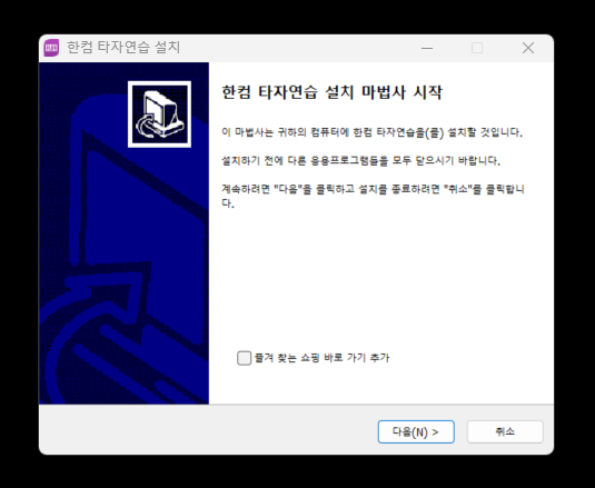 3. 한컴 타자연습 설치 마법사를 진행합니다.